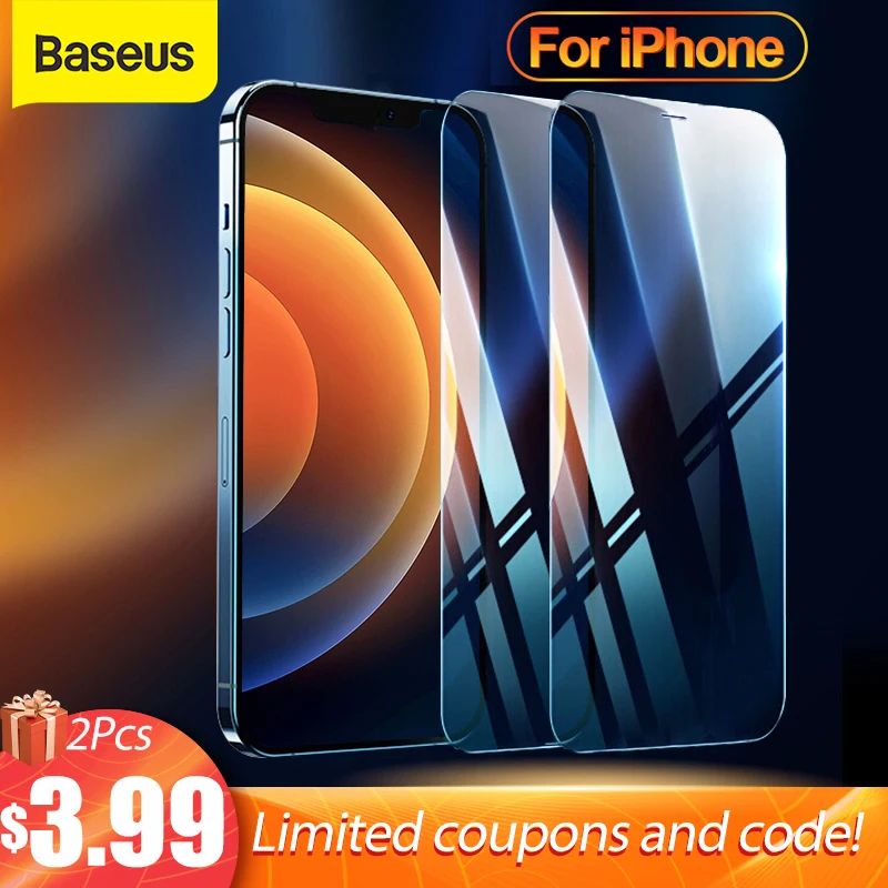 Baseus 2Pcs Tempered Glass For iPhone 12 11 Pro Max XS Max XR Protector For iPhone Tempered Film Screen Protector Front Glass HD